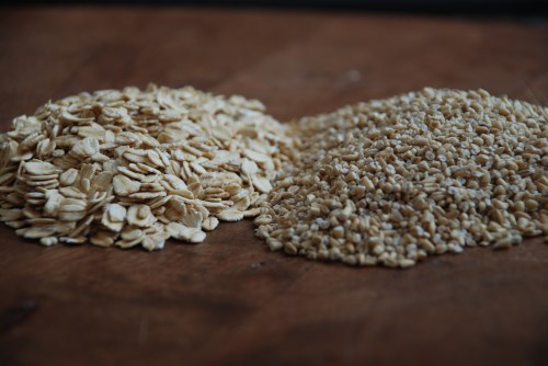 Rolled Oats on the left and Steel Cut Oats on the right.